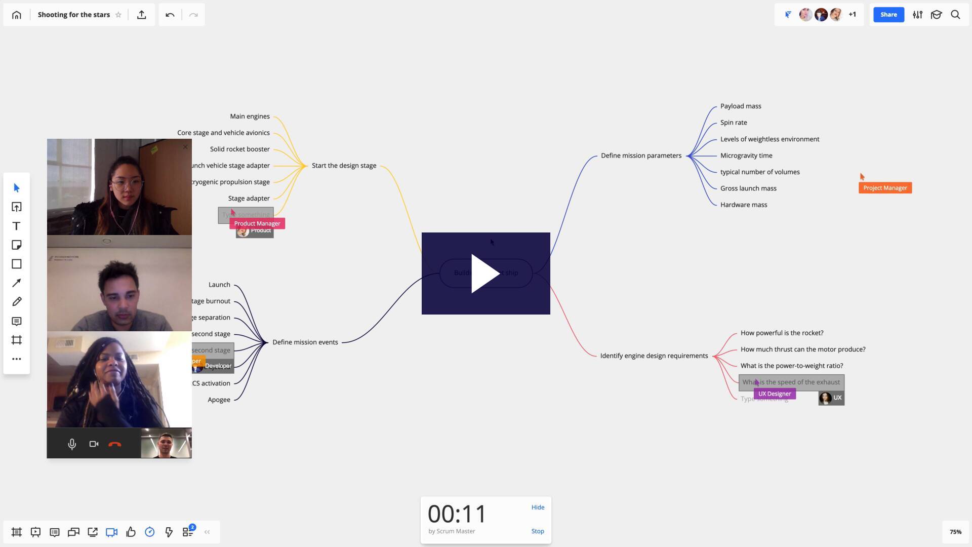 Das Whiteboard von Miro ist ein online Whiteboard, das es den Benutzer*innen ermöglicht, Ideen zu präsentieren und sowohl asynchron als auch in Echtzeit zusammenzuarbeiten. Das Whiteboard kann auch zum Brainstorming, zur Moderation von Meetings, zur Durchführung von agilen Workshops und Kursen und vielem mehr verwendet werden. Die Vorlagen Bibliothek von Miro bietet Hunderte von Vorlagen für jeden Bedarf.