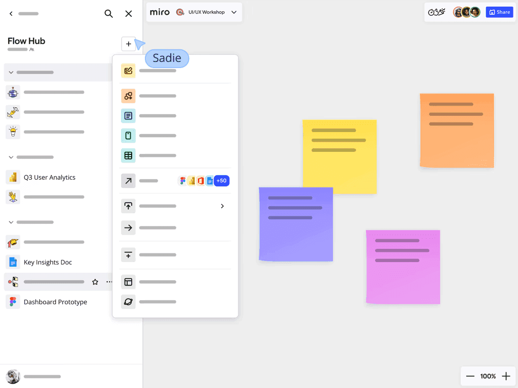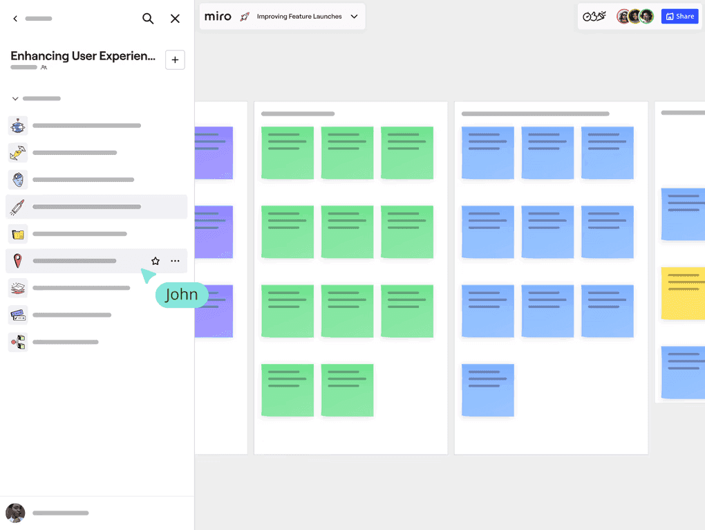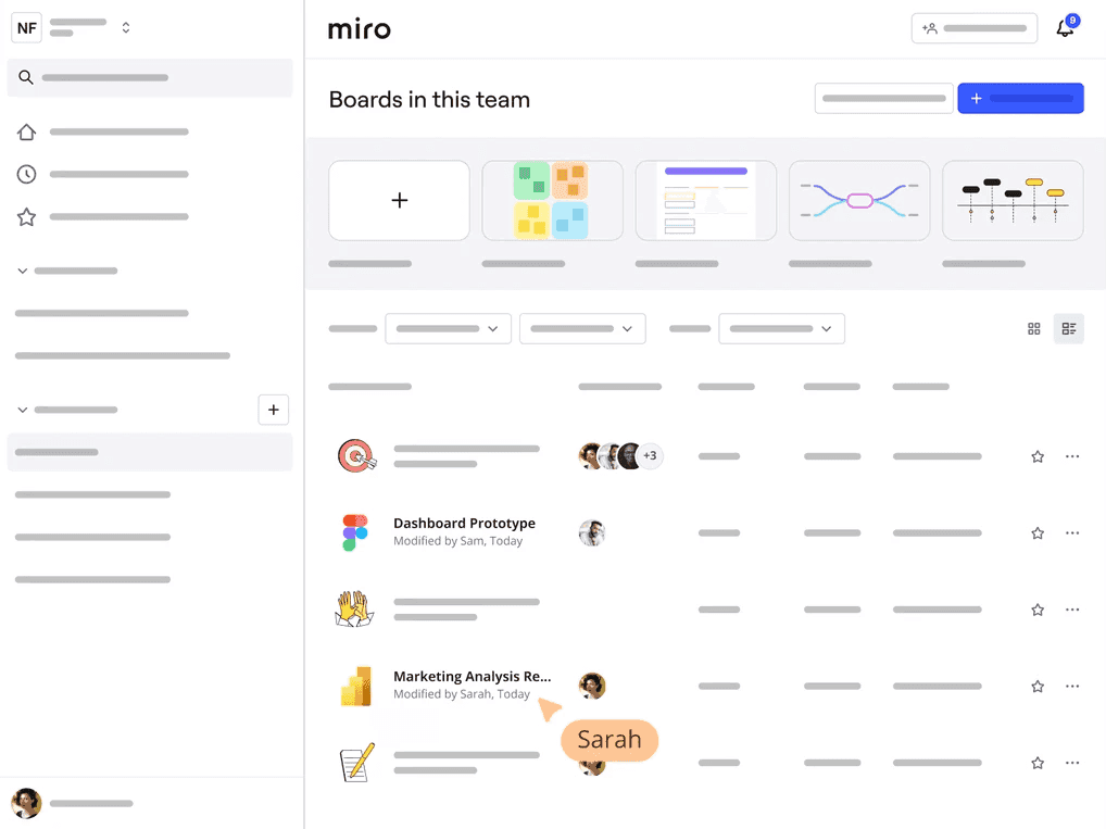 Use Spaces to bring your Miro boards together so it's easier to keep track of work. Move even faster with business-tested templates, or customize to suit your style.