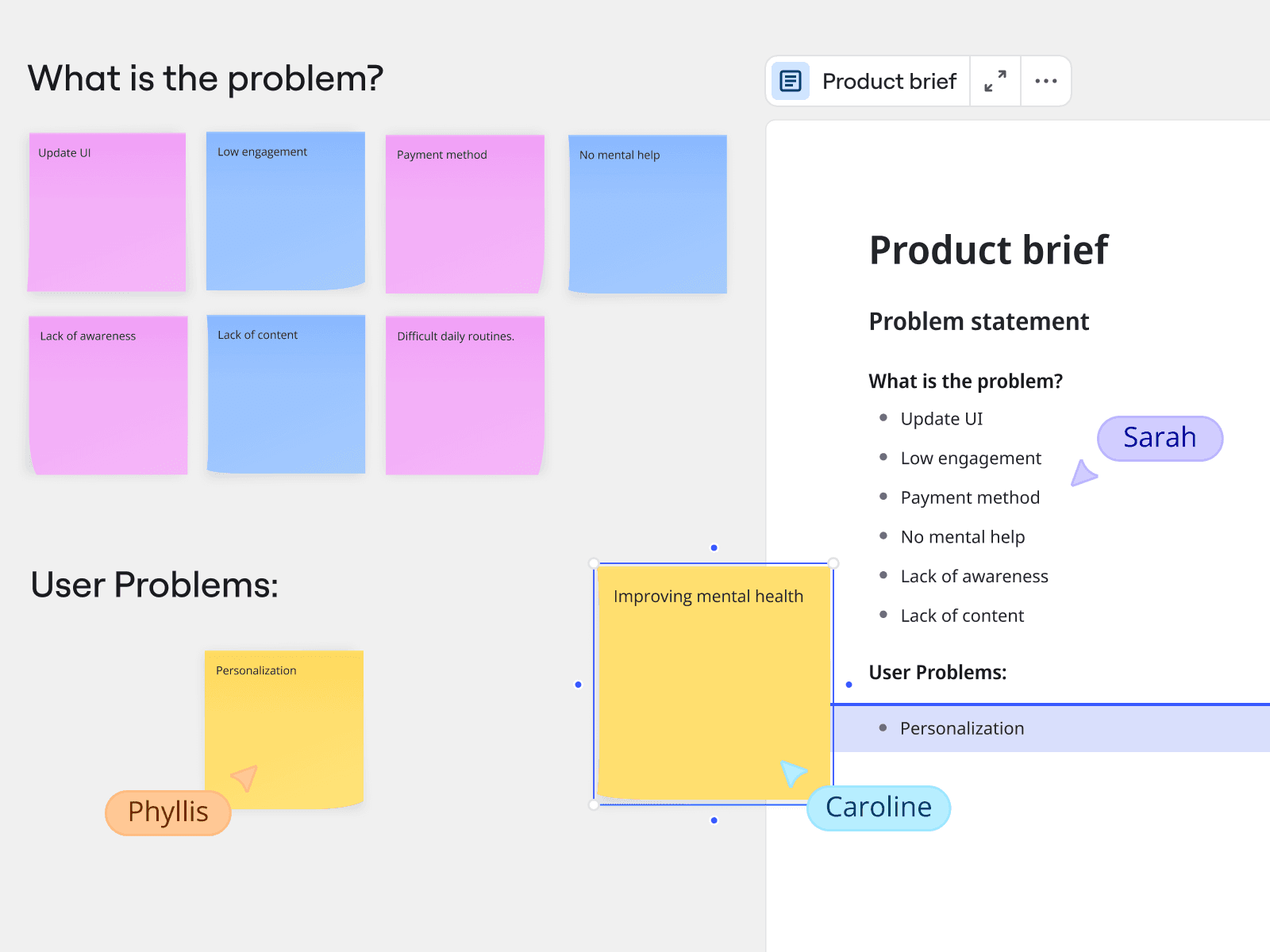 Quickly turn ideas into action with Miro Docs. Go from brainstorming to structured plans—all in one seamless workspace.