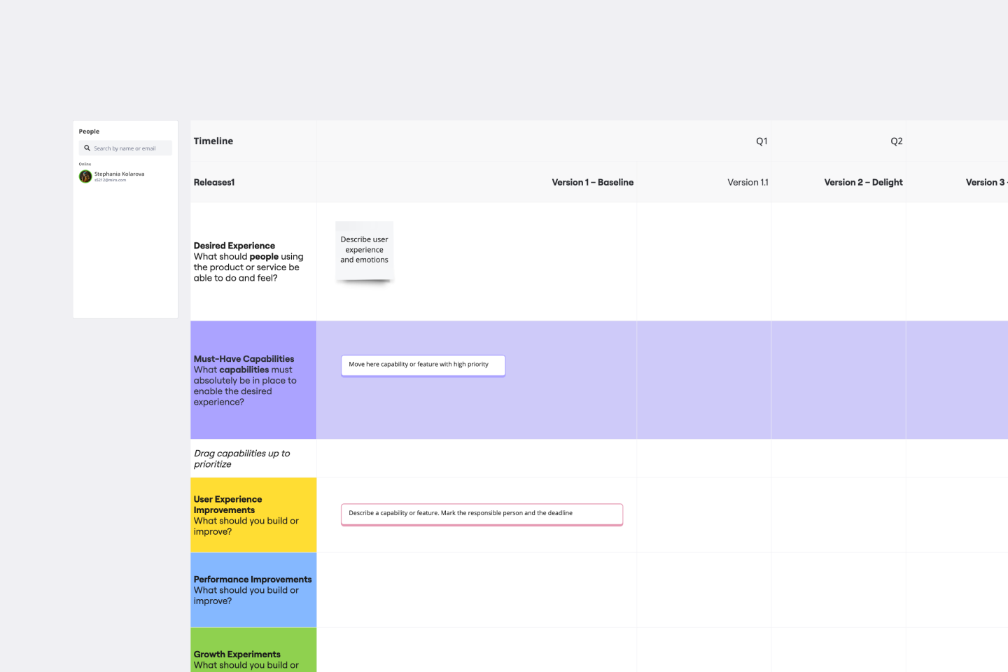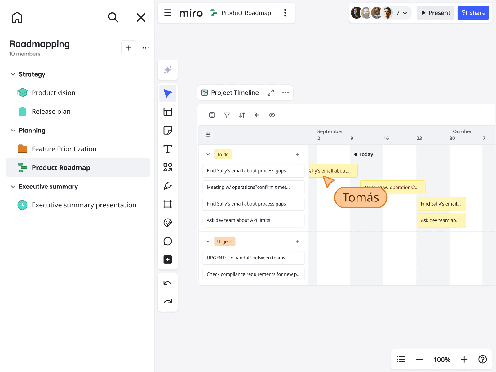 Our roadmap creator has the perfect blend of structure and flexibility. So your team can collaborate and share up-to-date work with anyone, from workshops with engineering, to presentations for stakeholders.