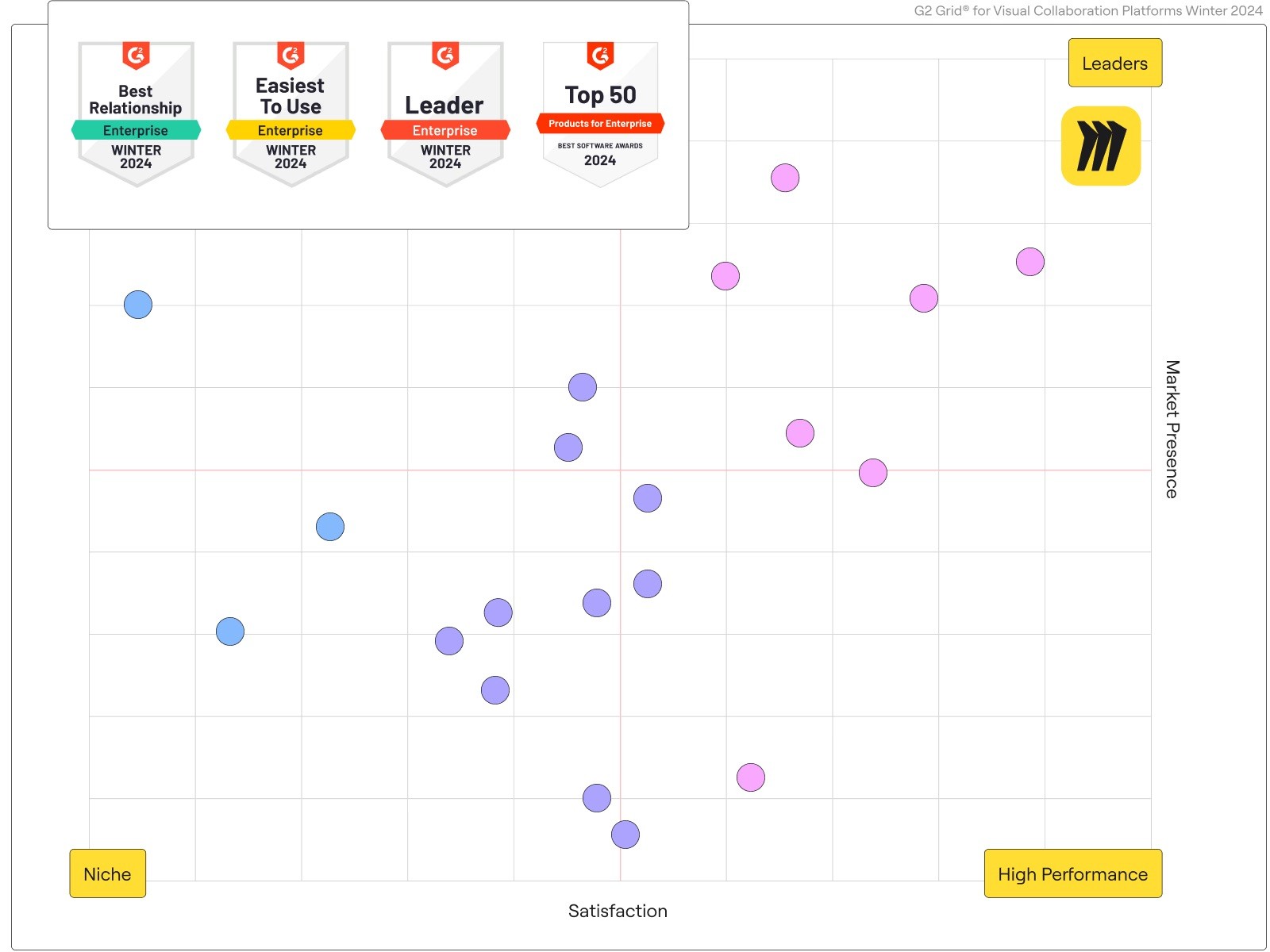 Users love Miro for end-to-end innovation. We're the G2 leader in visual collaboration platforms and are rated in the top 50 enterprise tools. Miro helps large companies get meaningful work done.