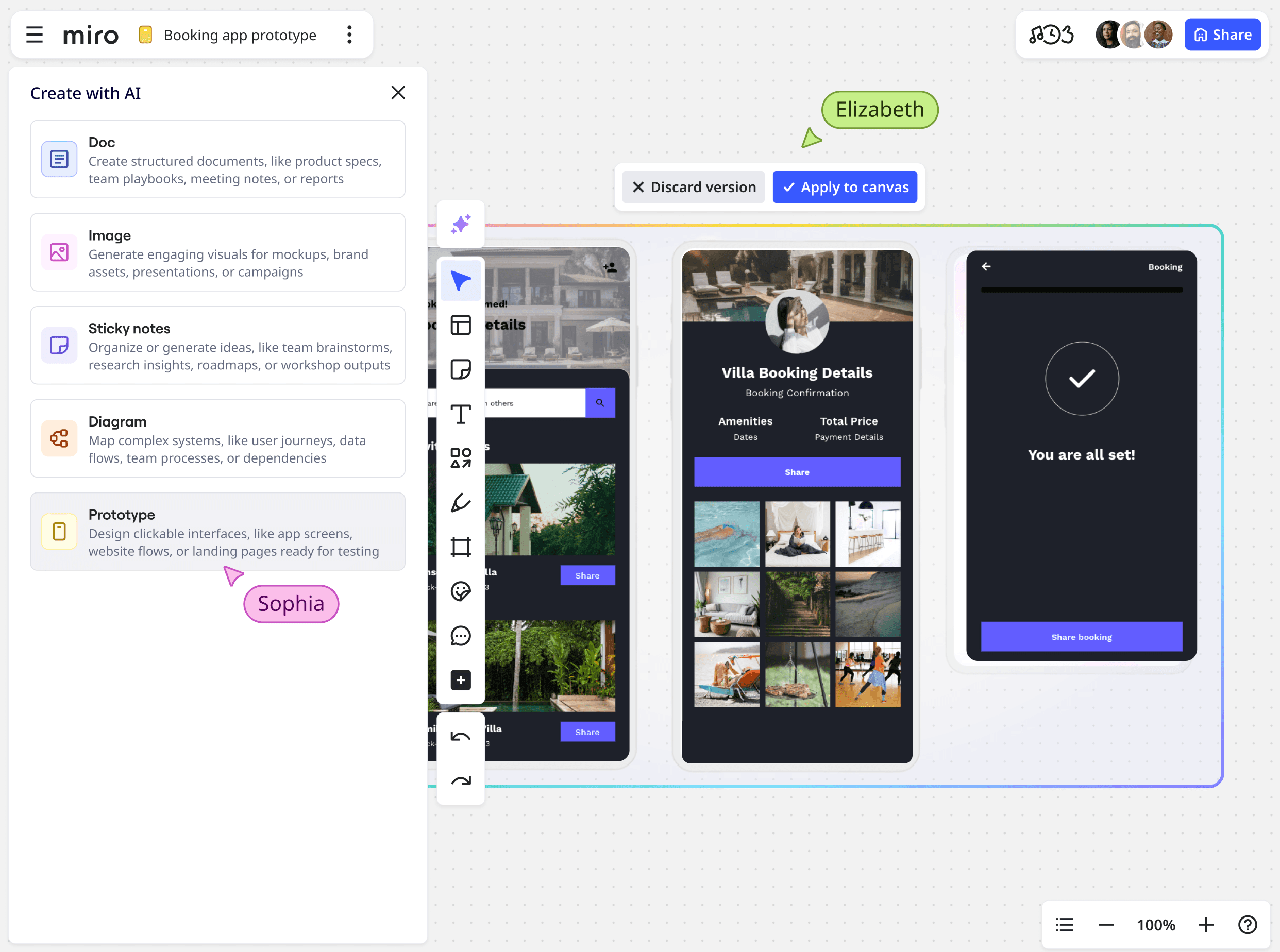 Whether it’s a deck, a prototype, or a product plan, turn rough ideas into real results. Miro’s smart workflows keep you moving, so you can spend more time building and less time managing. Get great done!